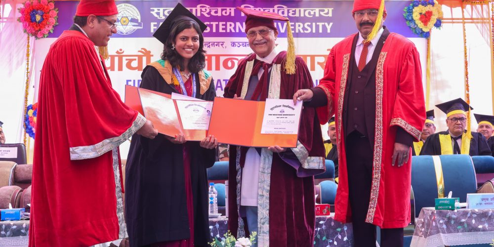 प्रधानमन्त्री एवं कुलपति केपी शर्मा ओलीको उपस्थितिमा आज सम्पन्न सुदूरपश्चिम विश्वविद्यालयको पाँचौँ दीक्षान्त समारोहमा तीन सय ७२ विदार्थी दीक्षित भएका छन् । विश्वविद्यालयका मानविकी तथा समाजशास्त्र, शिक्षा, व्यवस्थापन, इञ्जिनियरिङ र कृषि विज्ञानमा स्नातक र स्नातकोत्तर उपाधि हासिल ती विद्यार्थी दीक्षित भएका हुन् ।