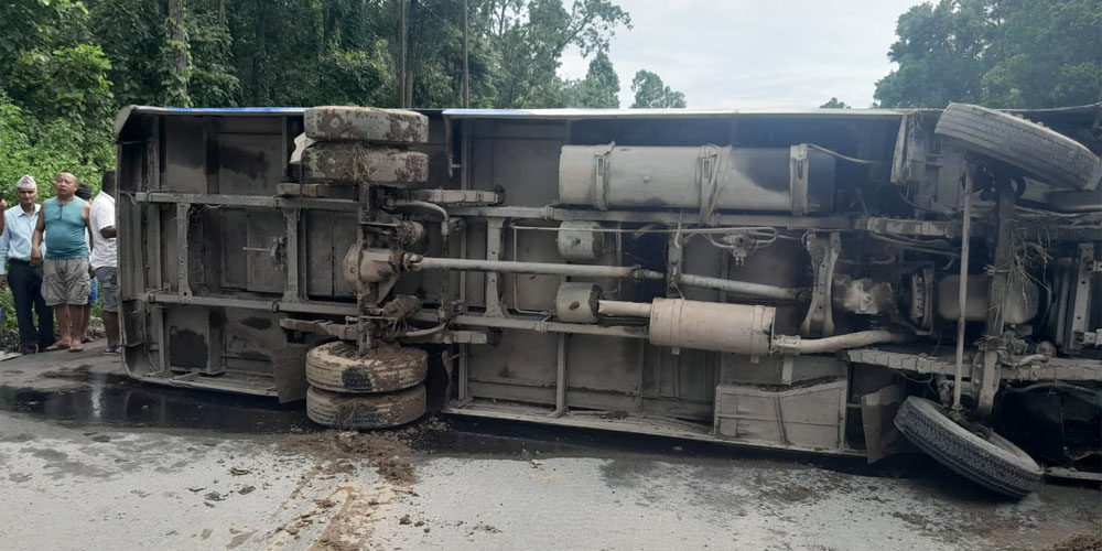 पूर्व पश्चिम राजमार्गमा बस पल्ट्यो, १३ जना घाइते