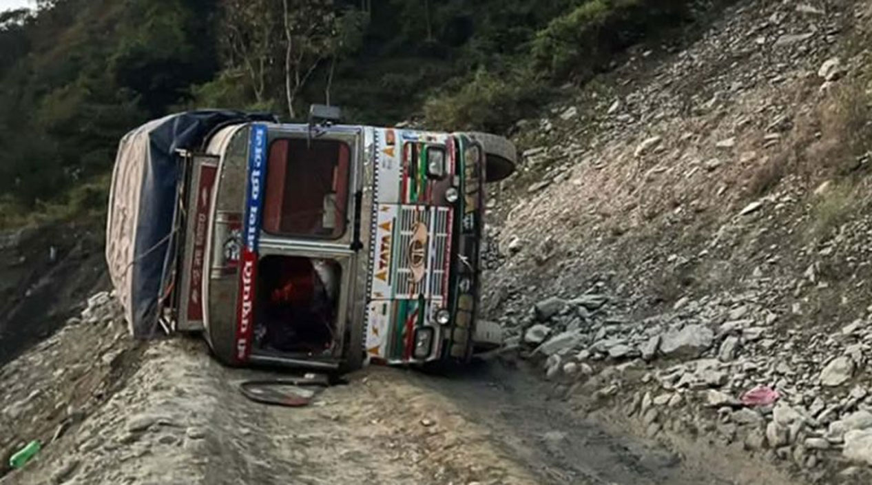 सडकमै ट्रक पल्टिएपछि कान्तिलोकपथ पूर्ण रूपमा अवरुद्ध