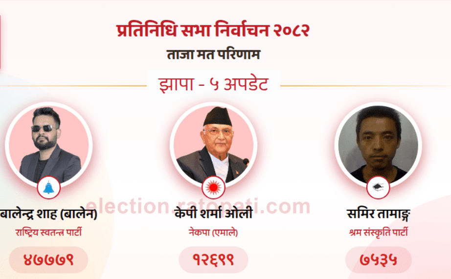 निर्वाचन आयोगले शनिबार बिहान ८:४८ बजेसम्म घोषणा गरेको नतिजा यस्तो छ: