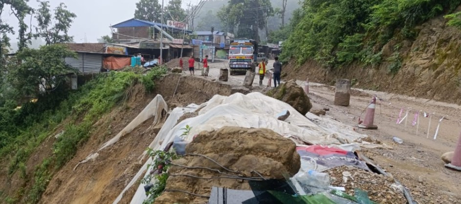 विनयी त्रिवेणी गाउँपालिका–२ स्थित दाउन्ने बजारमा भासिएको सडकमा थप क्षति भएर समस्या हुनसक्ने भएकाले यातायात रोकेर मर्मत गर्न लागिएको उनले जानकारी दिए। यस खण्ड भएर यात्रा गर्ने यात्रुलाई वैकल्पिक मार्गको प्रयोग गर्न अनुरोध गरिएको प्रनाउ पौडेलले बताए ।