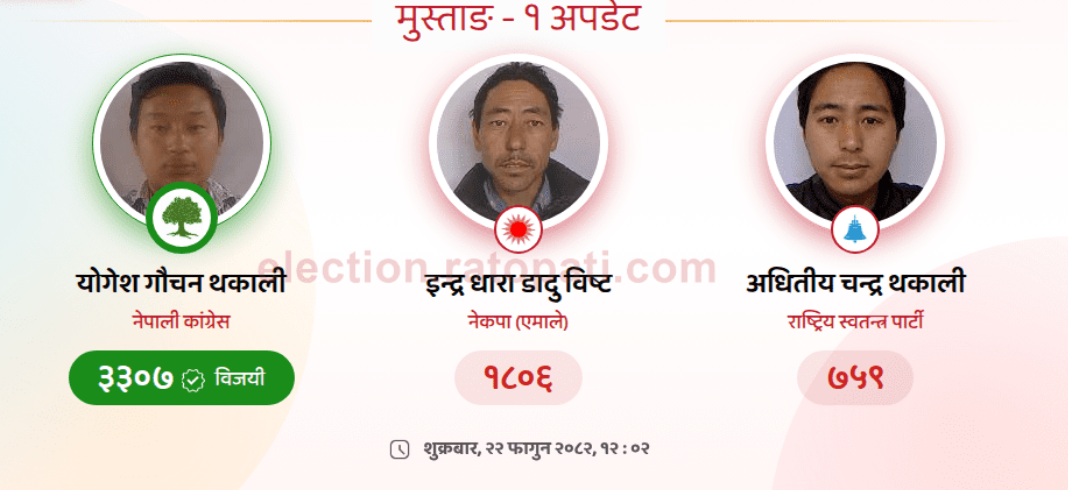 ओलीले ४ हजार ८७ मत पाउँदा बालेनले १० हजार १९० मत पाएका हुन् । झापा–५ को मतगणना जारी रहेको छ ।